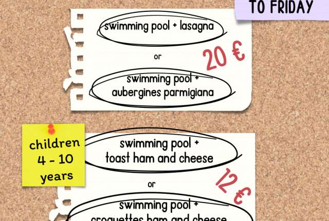 parcheggio privato – mostra “Gioielli a 6 zampe” – percorso sensoriale – ingresso biosfera – giardino delle rose e degli uccellini – parco giochi – area pic-nic – fattoria – utilizzo della piscina – lettino per gli adulti – wi-fii – parco degli impollinatori.