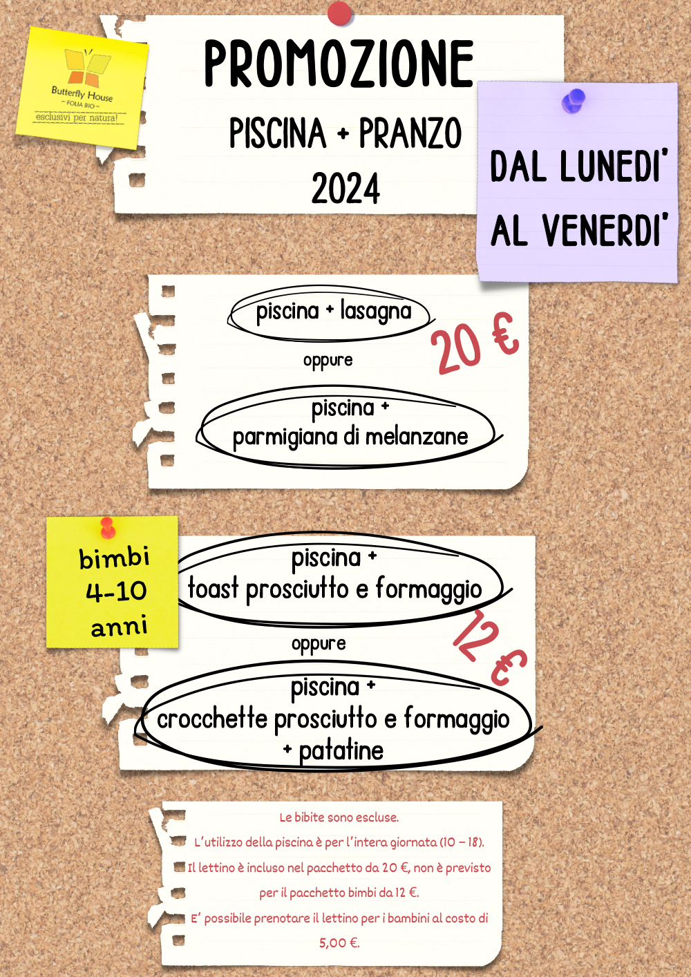 Il lettino è incluso nel pacchetto da 20 €, non è previsto per il pacchetto bimbi da 12 €.
